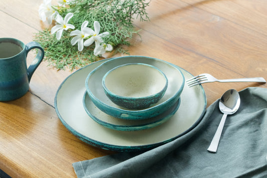 Green- Chocolate Brown Dinner set of 6 - Made to Order