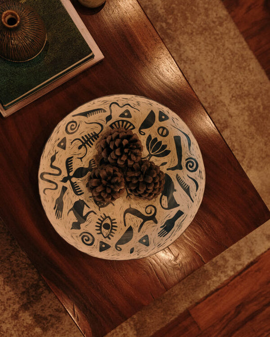 Meticulously hand-drawn and carved, each intricate stroke serves as the primary surface work on these pieces, shaping Egyptian-inspired motifs. The exotic symbols and Hieorglyphs used offer a captivating alternative to more conventional styles.