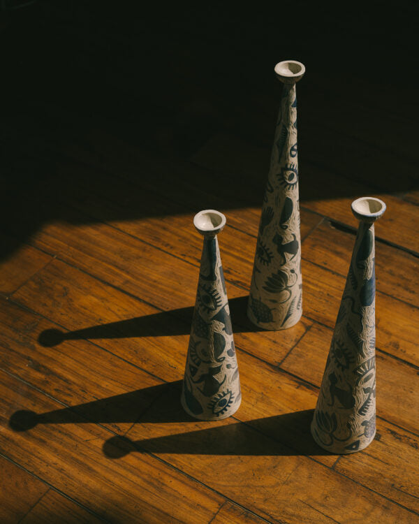 The Phoenix Candle Sticks are Made to Order. Each piece is hand made and unique, so there might be subtle differences in shape and form.