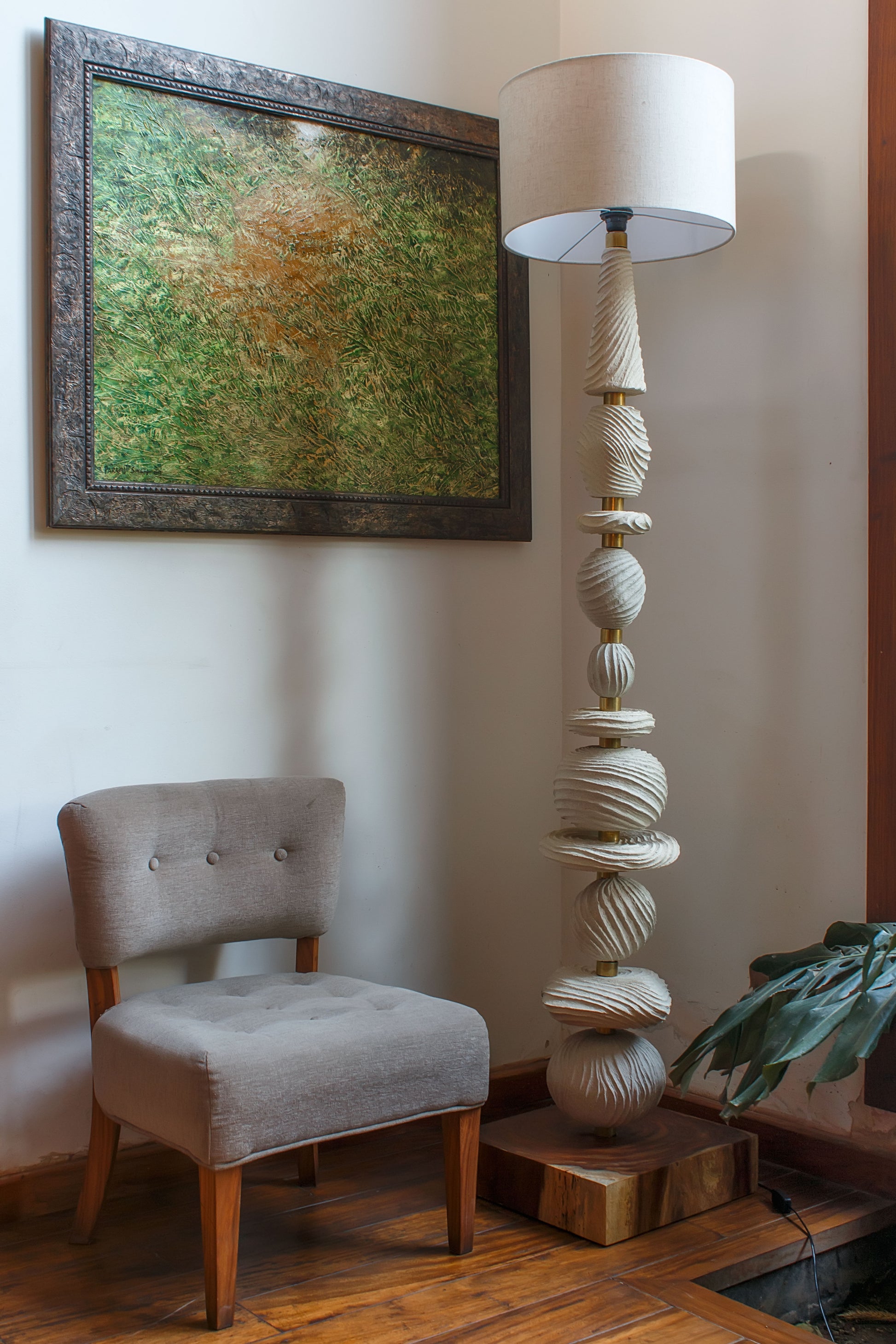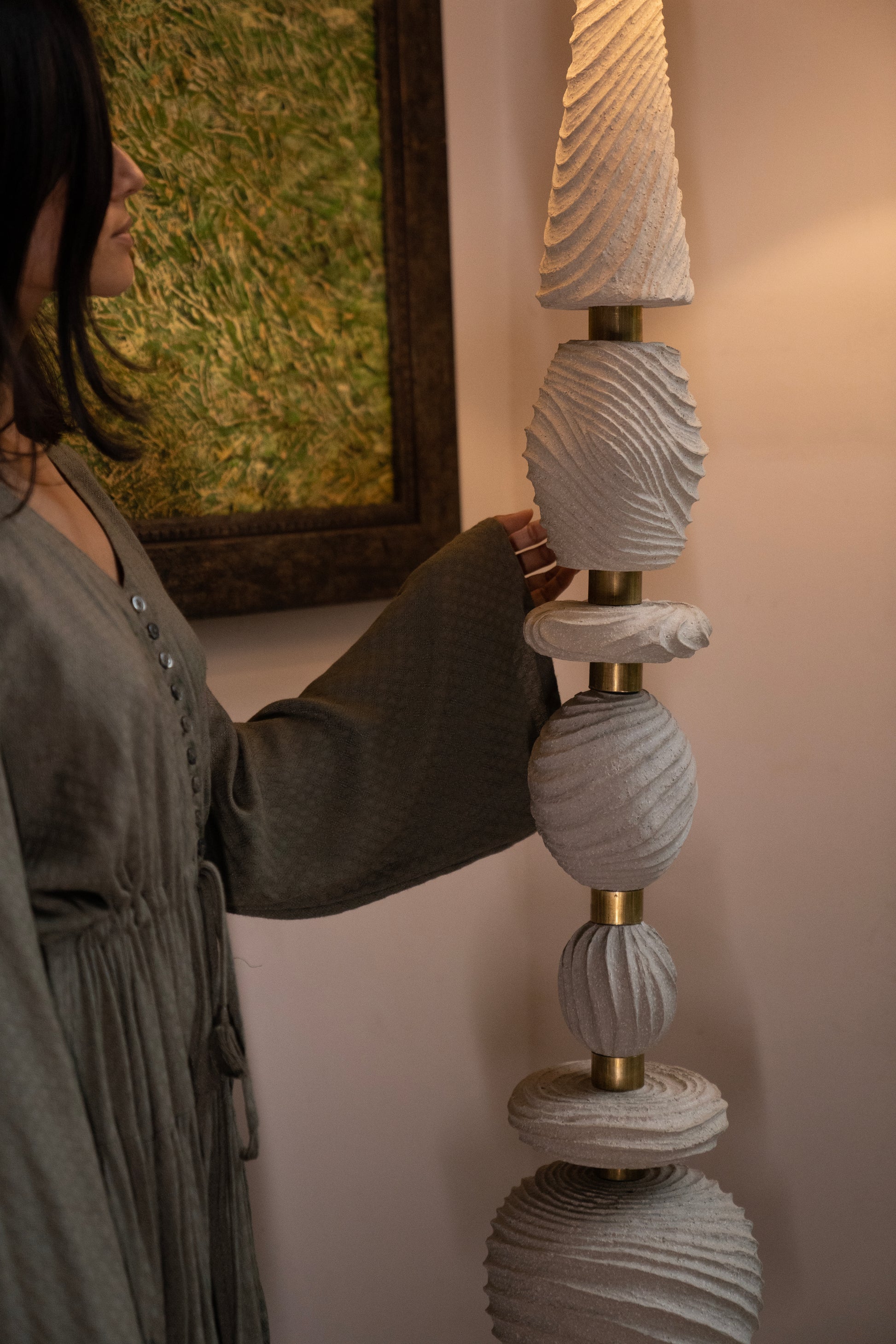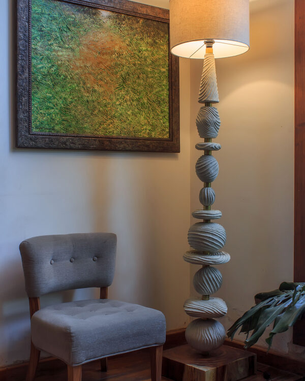 A statement piece for grand entrances and lobbies, the Sahara Totem Lamp’s wind-sculpted design and grandeur add a sense of serenity to living spaces. The play of light on its earthy textures creates an ambiance of tranquility. Perfect for contemporary interiors seeking a harmonious balance.