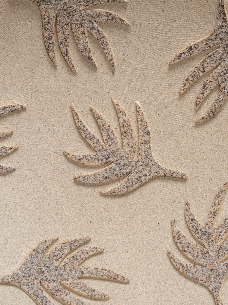 Handcrafted with care, the Sandleaf Hollow Centerpiece features sand-textured leaf impressions that exude earthy charm. Its hollowed form adds depth, making it a striking yet versatile accent for coffee tables, dining spaces, or consoles. A timeless piece for those who love understated sophistication.